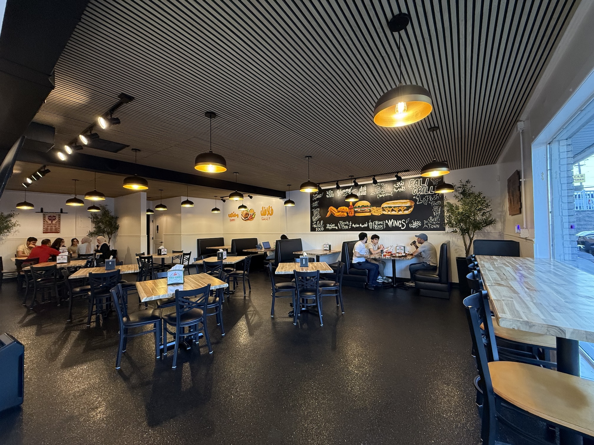 Pali Grill has the cozy feel of a diner. The 1,800-square-foot space seats about 50 people, offering a relaxed atmosphere where guests can sit back and enjoy their meal.